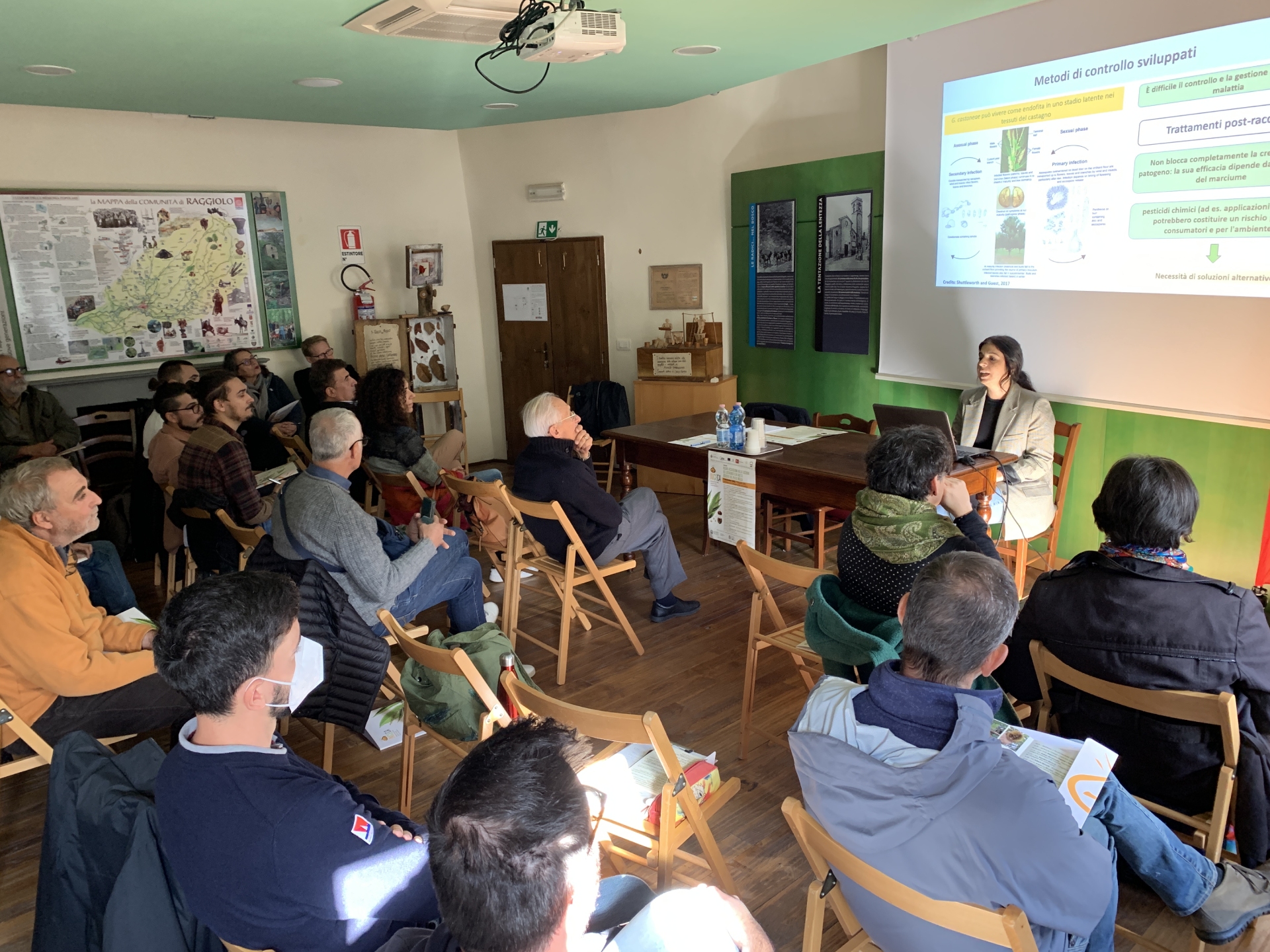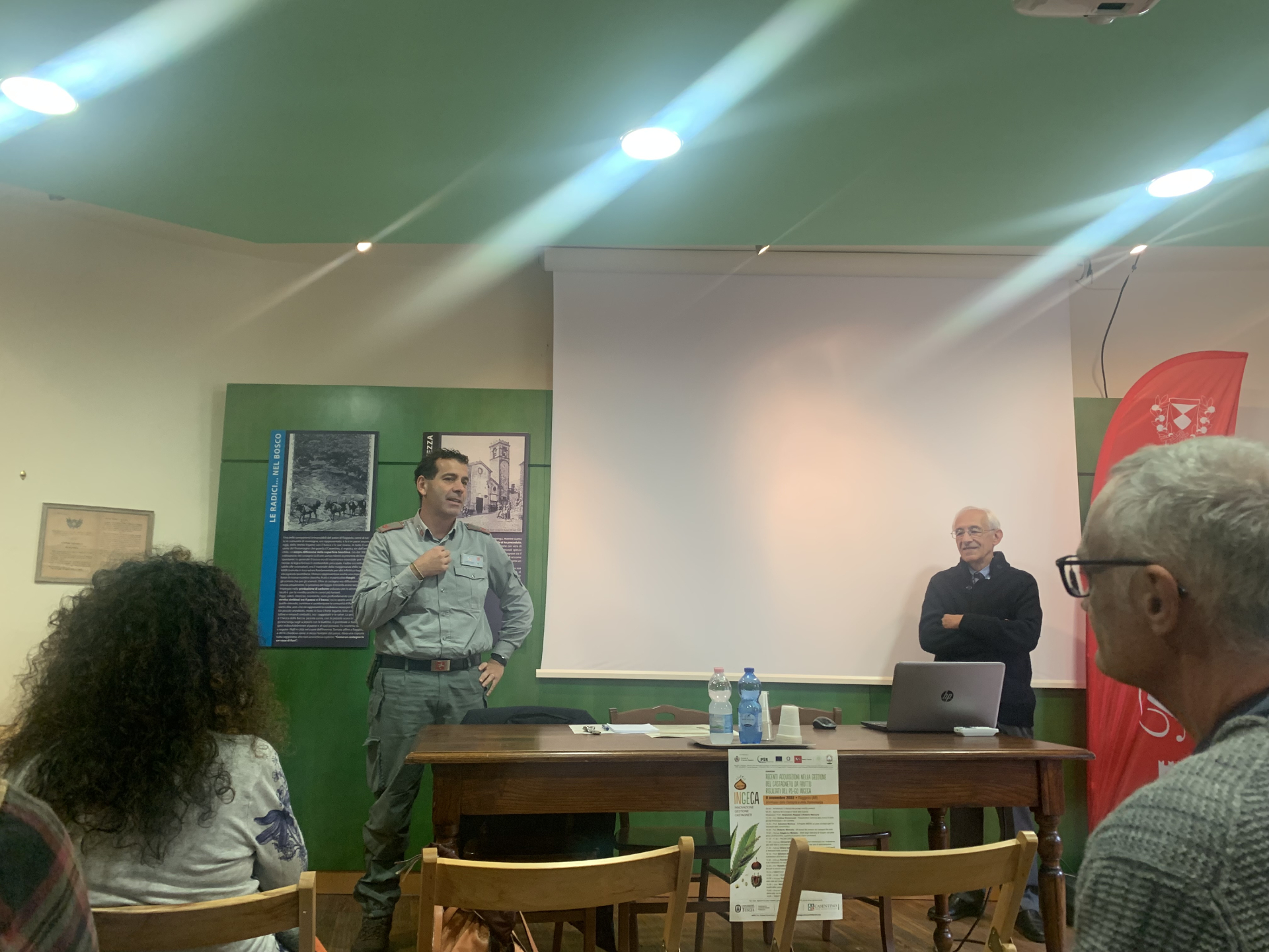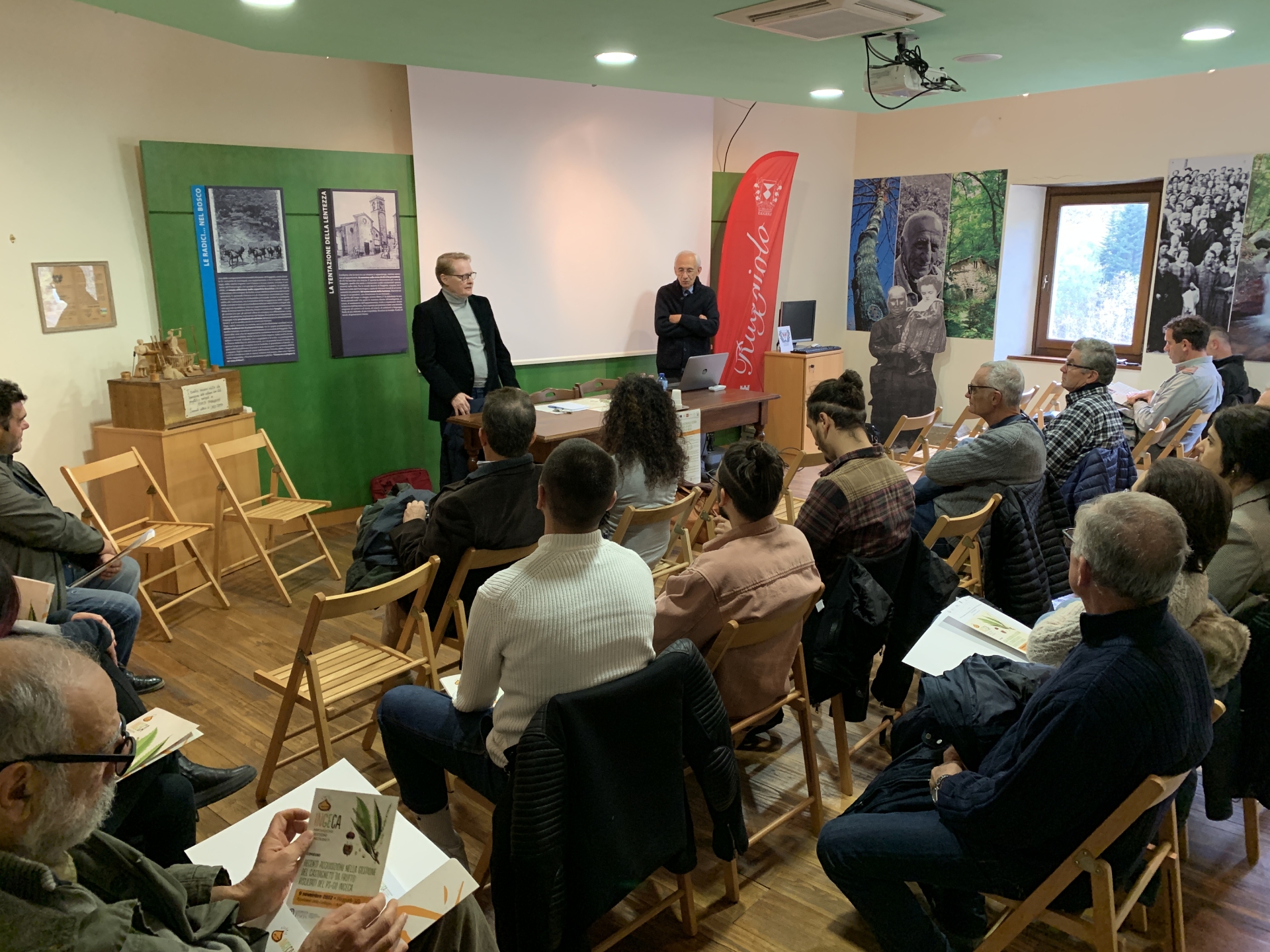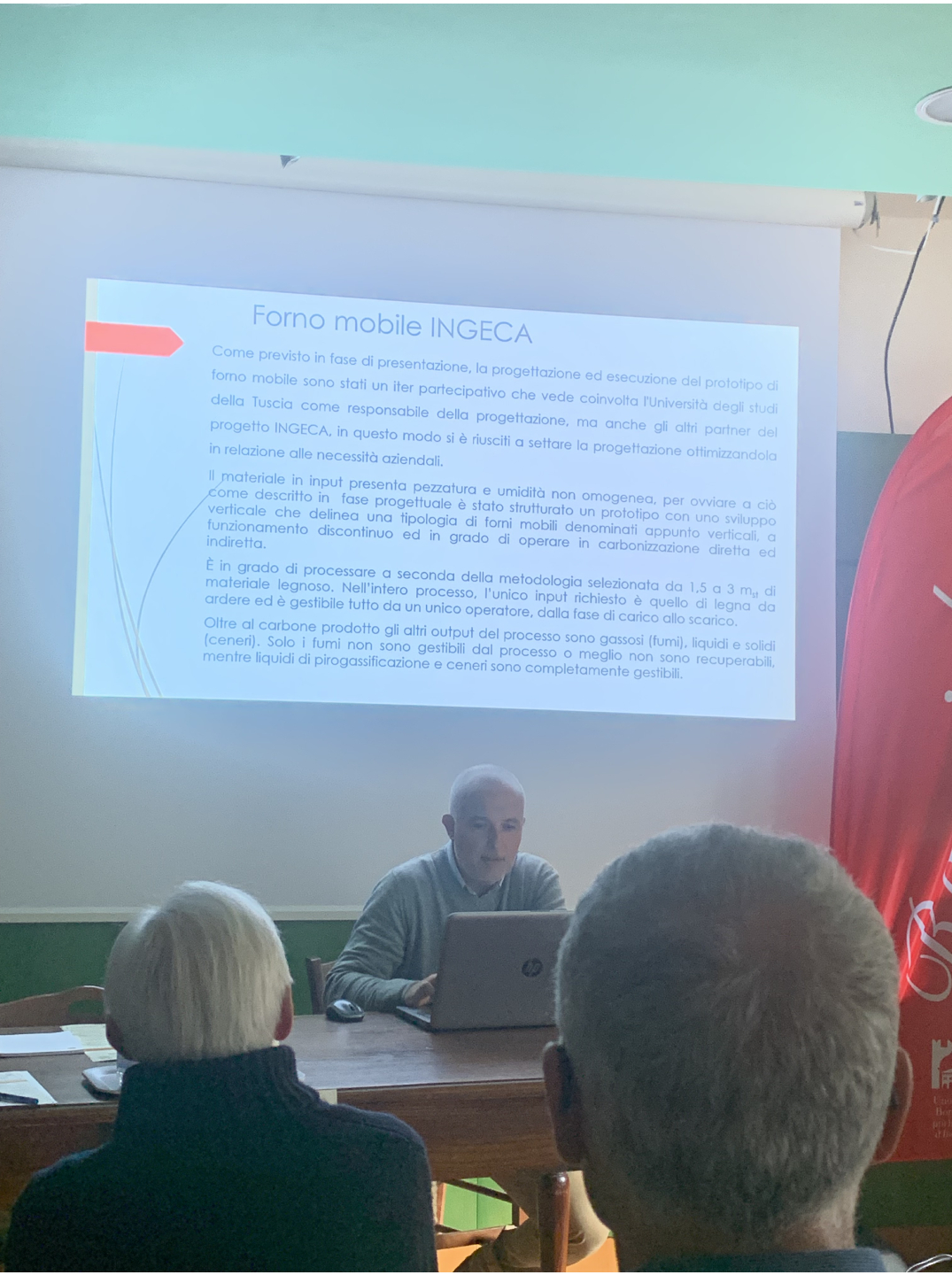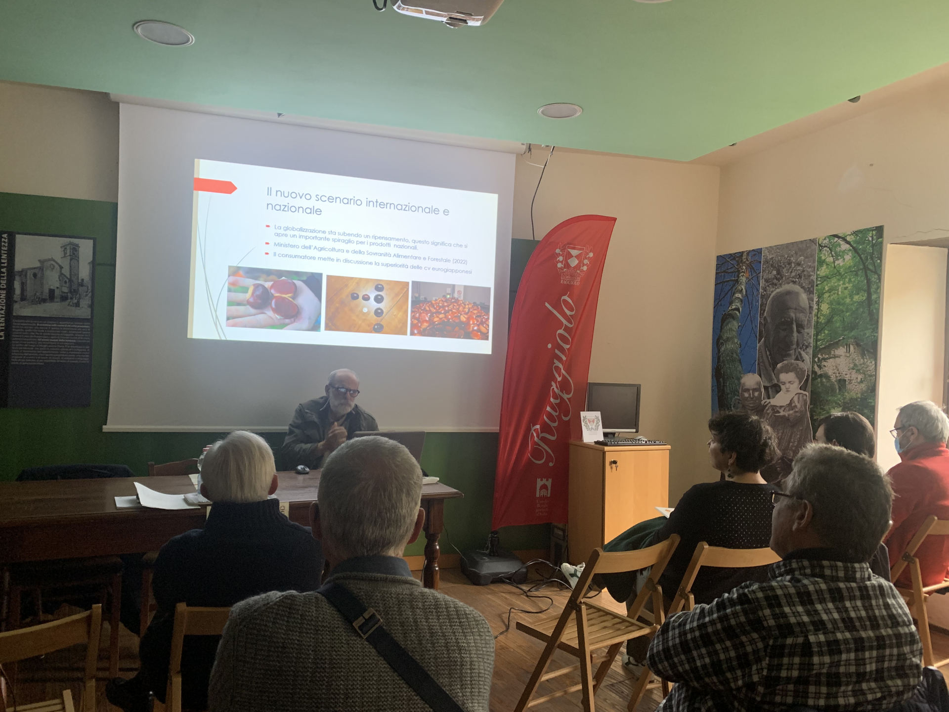 Mercoledì 9 Novembre 2022 si è svolto, presso il suggestivo Ecomuseo della Castagna e della Transumanza di Raggiolo (AR), il convegno conclusivo del progetto INGECA, dal titolo “Recenti acquisizioni nella gestione del castagneto da frutto: risultati del ps-go INGECA”. L’evento, previsto nell’ambito delle attività di divulgazione del progetto, si è protratto per l’intera giornata e si è concluso con un ampio quanto vivace dibattito sui principali temi emersi durante la giornata. Alla discussione finale hanno partecipato, oltre a docenti e ricercatori delle Università di Firenze e Viterbo, aziende castanicole, rappresentanti di Enti territoriali operanti nell’ambito della castanicoltura, ed altri stakeholder. Gli interventi hanno illustrato i principali risultati ottenuti negli anni di sperimentazione del progetto che hanno visto protagoniste le tematiche di difesa dei castagneti da parassiti vegetali e animali nonché alcune innovazioni tecnologiche per una meccanizzazione più efficiente della filiera castanicola. Fra le maggiori ricadute, si sottolineano la messa a punto di metodi efficaci di controllo delle principali malattie del castagneto (ad es. trattamenti endoterapici per il controllo biologico e diagnosi precoce di malattie fungine; uso di nematodi entomoparassiti e feromoni sessuali contro insetti) come pure metodi di gestione e tecnica colturale (ad es. potature di allevamento e fitosanitarie, interventi di recupero e trattamenti con nematodi al suolo) e recupero e valorizzazione dei prodotti di scarto del castagneto (es. prototipo di carbonaia mobile per la produzione di carbone e biochar). Le innovazioni biotecnologiche sviluppate per la difesa dei castagni dalle avversità parassitarie si pongono come valide alternative ai metodi di difesa classici. Tali soluzioni, che hanno già rivelato la loro efficacia in altri contesti colturali, rappresentano nuovi ed avanzati strumenti per una gestione del castagneto da frutto innovativa ed ecosostenibile. L’efficacia e la validità delle soluzioni proposte nell’ambito del progetto INGECA hanno suscitato vivo interesse nei tecnici (dottori agronomi e forestali) e nelle aziende castanicole che hanno partecipato al convegno. La castanicoltura, infatti, da sempre coltura marginale e di basso reddito, si gioverebbe più di altre tipologie di colture di metodi di gestione e di difesa antiparassitaria poco onerosi, pratici ed ecosostenibili.