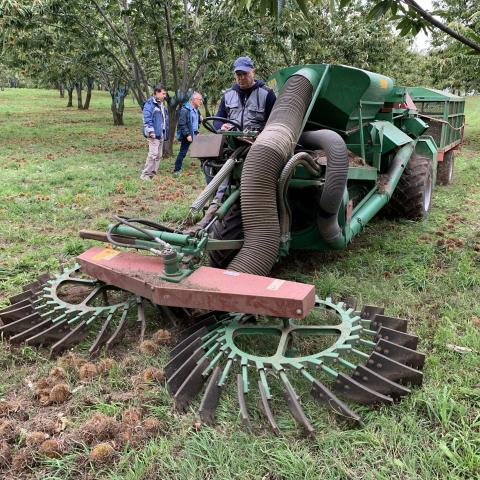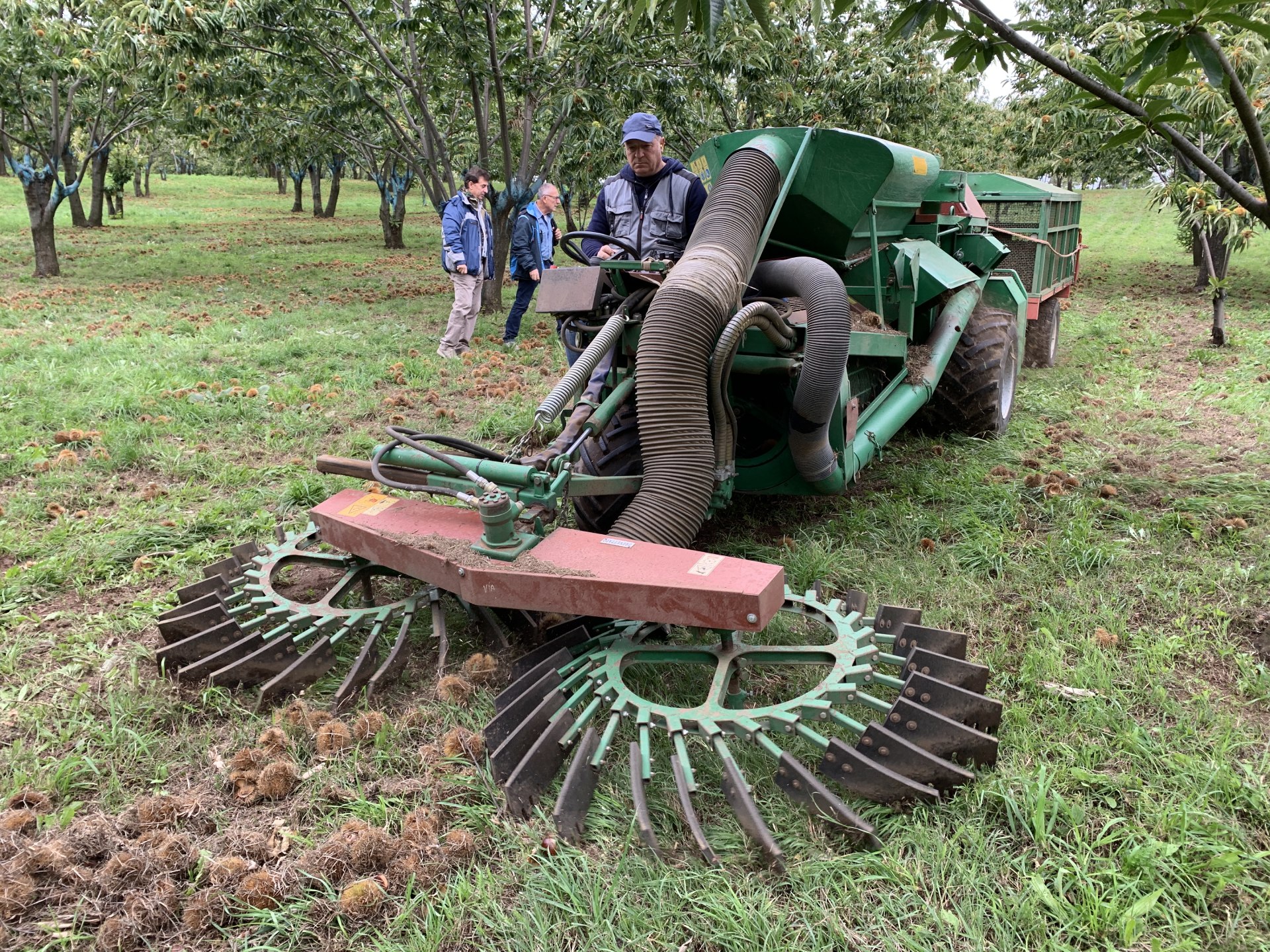 Nel primo pomeriggio è stata poi visitata una piantagione di castagni da frutto di nuova concezione a Vitorchiano e nell’occasione si è potuto osservare direttamente in campo il funzionamento di una macchina per la raccolta meccanizzata delle castagne.